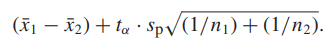 > If the assumptions for a pooled t-interval are satisfied, the formula for a (1 − α)-level lower confidence bound for the difference, μ1 − μ2, between two population means is For a right-tailed hypothesis test at the significance level α, the null hypothe