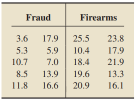 The Federal Bureau of Prisons publishes data in Prison Statistics on the times served by prisoners released from federal institutions for the first time. Independent random samples of released prisoners in the fraud and firearms offense categories yielded the following information on time served, in months.