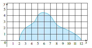 > (a). Use six rectangles to find estimates of each type for the area under the given graph of f from x = 0 to x = 12. (i). L6 (sample points are left endpoints) (ii). R6 (sample points are right endpoints) (iii). M6 (sample points are midpoints) (b). Is L