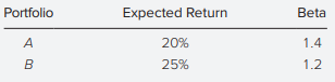 > Based on current dividend yields and expected growth rates, the expected rates of return on stocks A and B are 11% and 14%, respectively. The beta of stock A is .8, while that of stock B is 1.5. The T-bill rate is currently 6%, while the expected rate of