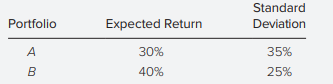 > Suppose that there are many stocks in the security market and that the characteristics of stocks A and B are given as follows: / Suppose that it is possible to borrow at the risk-free rate, rf . What must be the value of the riskfree rate? (Hint: Think