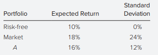 > Suppose that there are many stocks in the security market and that the characteristics of stocks A and B are given as follows: / Suppose that it is possible to borrow at the risk-free rate, rf . What must be the value of the riskfree rate? (Hint: Think