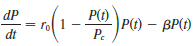 In a fish farm, a population of fish is introduced into a pond and harvested regularly. A model for the rate of change of the fish population is given by the equation where r0 is the birth rate of the fish, Pc is the maximum population that the pond can sustain (called the carrying capacity), and β is the percentage of the population that is harvested.