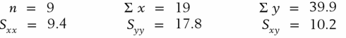 > Calculations from a data set of n = 36 pairs of ( x, y) values have provided the following results. Obtain the correlation coefficient.