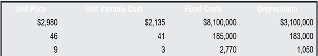 In each of the following cases, calculate the accounting break-even and the cash breakeven points. Ignore any tax effects in calculating the cash break-even.