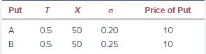 > These three put options all are written on the same stock. One has a delta of −0.9, one a delta of −0.5, and one a delta of −0.1. Assign deltas to the three puts by filling in the table below.