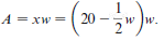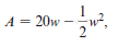 A = xw=20 1 - / w)w. W. 2 A = 20w - 21/1²/2 W