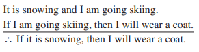 > In Exercises 49–58, translate the argument into symbolic form. Then determine whether the argument is valid or invalid. The printer has a clogged nozzle or the printer does not have toner. The printer has toner. Therefore, the printer has a clogged nozz