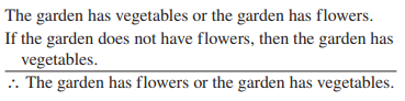 > In Exercises 49–58, translate the argument into symbolic form. Then determine whether the argument is valid or invalid. The printer has a clogged nozzle or the printer does not have toner. The printer has toner. Therefore, the printer has a clogged nozz