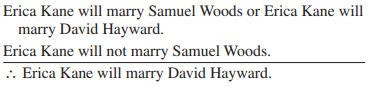 > In Exercises 49–58, translate the argument into symbolic form. Then determine whether the argument is valid or invalid. The printer has a clogged nozzle or the printer does not have toner. The printer has toner. Therefore, the printer has a clogged nozz