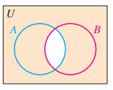 > In Exercises 65–68, use a set statement to write a description of the shaded area. Use union, intersection, and complement as necessary. More than one answer may be possible