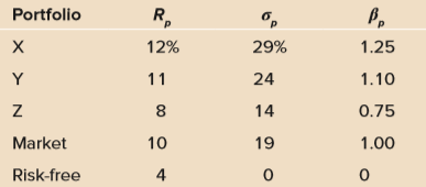 You are given the following information concerning three portfolios, the market portfolio, and the risk-free asset:
