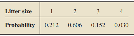In the article “Reproductive Ecology and Cub Survival of Florida Black Bears” (Journal of Wildlife Management, Vol. 71, Issue 3, pp. 720–727), E. Garrison et al. investigated cub survival rates of the Florida black bear. Through the observation of female Florida black bears and their litters, the following estimate is given for the probability distribution of the number of young per litter for female Florida black bears.