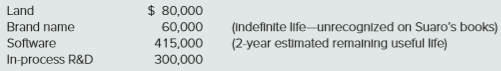 Pecos Company acquired 100 percent of Suaroâs outstanding stock for $1,450,000 cash on January 1, 2017, when Suaro had the following balance sheet: