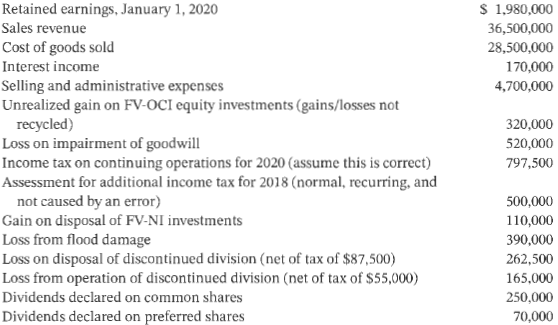 > L&G Inc., a retailer of garden tools that follows ASPE, had the following statements prepared as of December 31, 2020: Additional information: 1. Dividends on common shares in the amount of $12,000 were declared and paid during 2020. 2. Depreciation