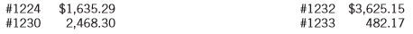 #1224 $1,635.29 #1230 #1232 $3,625.15 #1233 2,468.30 482.17