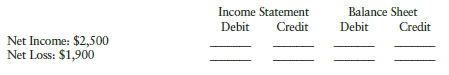 Income Statement Balance Sheet Debit Credit Debit Credit Net Income: $2,500 Net Loss: $1,900
