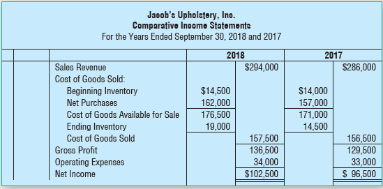 Jacobâs Upholstery, Inc., reported the following comparative income statements for the years ended September 30, 2018, and September 30, 2017.