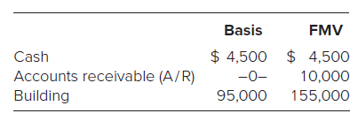 b. Cash $4,500; A/R $10,000; building $155,000.