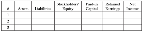 Use the following code to indicate the effect each of the three transactions has on the financial statement categories listed in the table below, assuming Joe Dumars Company uses the cost method (I = Increase; D = Decrease; NE = No effect).