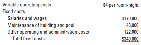 John Branch is the managing partner of a business that has just finished building a 60-room motel. Branch anticipates that he will rent these rooms for 16,000 nights next year (or 16,000 room-nights). All rooms are similar and will rent for the same price. Branch estimates the following operating costs for next year: