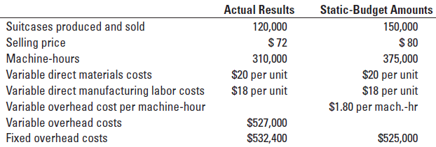 Johns Manufacturing Company manufactures and sells rolling suitcases. After several years of increased sales, Johns experiences a drop in sales in 2020 from increased competition. Johns uses machine-hours as the cost-allocation base for variable and fixed manufacturing costs. Budgeted and actual costs for 2020 are as follows: