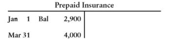 Castaway prepays insurance on March 31 each year. At December 31, $1,700 is still prepaid.