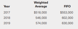 J&S Arnez Company began operations in 2017 and initially adopted the weighted-average method for inventory valuation. In 2019, in accordance with the inventory valuation policies followed by other companies in its industry, Arnez changed its inventory pricing to the FIFO method. The company still uses the weighted-average method of inventory valuation for income tax purposes. Arnez has a 30% tax rate. The pretax income data is reported as follows.