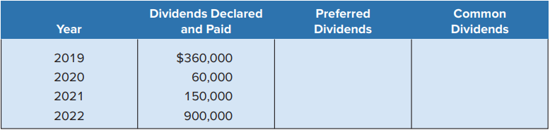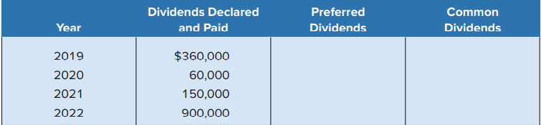 2. Calculate the total dividends to be paid to each group of shareholders in each year by completing the following chart. Assume that the preferred shares are non-cumulative.