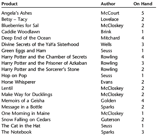 Add a ââTotalââ label in cell B27 and a SUM function in cell D27 to add up the quantity of books on hand. Change the name of Sheet1 to ââ8% Discount.ââ Create a copy of this worksheet and place it before Sheet2. Change the name of the newly created worksheet to ââ12% Discount.ââ Change the discount in cell F1 of this worksheet to 12%. Save the file as ch2-05_student_name (replacing student_name with your name).
