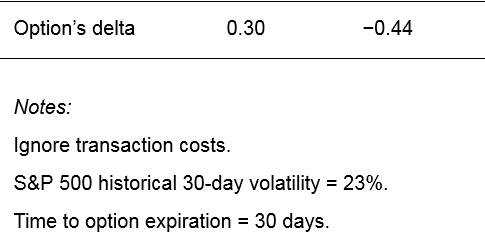 b. Discuss the effect on the hedge ratio (delta) of each option as the S&P 500 approaches the level of each of the potential outcomes listed in part (a).
