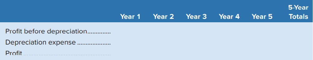 Kenartha Oil recently paid $483,900 for equipment that will last five years and have a residual value of $114,000. By using the machine in its operations for five years, the company expects to earn $180,000 annually, after deducting all expenses except depreciation. Complete the schedule below assuming each of (a) straight-line depreciation and (b) double-declining-balance depreciation.