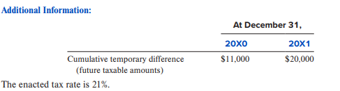 > Black Company, organized on January 2, 20X1, had pre-tax accounting income of $500,000and taxable income of $800,000 for the year ended December 31, 20X1. The only temporary difference is accrued product warranty costs, which are expected to be paid as f