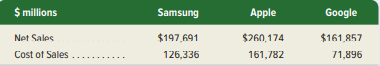 2. Is Samsungâs gross margin ratio better or worse than that for (a) Apple? (b) Google?