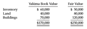 Yakima Book Value Fair Value Inventory Land $ 60,000 40,000 70,000 $ 50,000 80,000 120,000 Buildings $170,000 $250,000