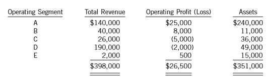 Operating Segment Total Revenue Operating Profit (Loss) Assets TITI $140,000 40,000 26,000 190,000 2,000 $25,000 8,000 (5,000) (2,000) $240,000 11,000 36,000 49,000 15,000 A B C E 500 $398,000 $26,500 $351,000