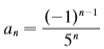 > Find a formula for the general term an of the sequence, assuming that the pattern of the first few terms continues. {-3, 2, –4. §, – 4. ..} 16 3 9