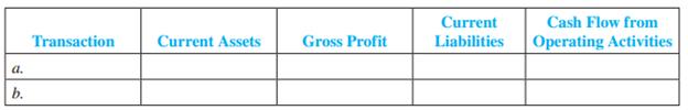 Current Cash Flow from Transaction Current Assets Gross Profit Liabilities Operating Activities а. b.