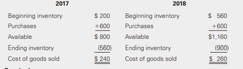 Lombardo Lumber Company incorrectly recorded inventory in 2017. Rather than recording ending inventory as $500, Lombardoâs accounting manager entered $560, overstating ending inventory by $60. An inventory summary for 2017 and 2018 as actually recorded by the company follows.
