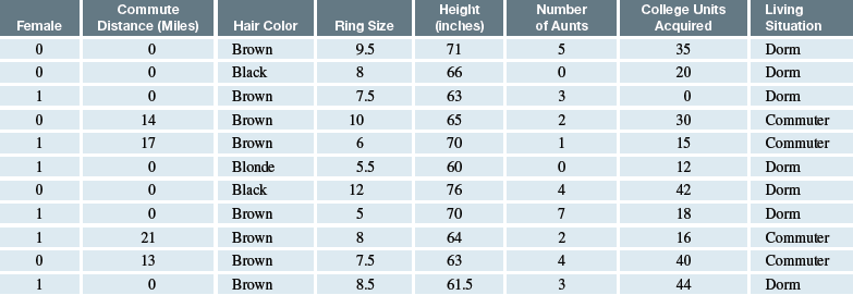 Make a two-way table from Table 1A for gender and living situation. Put the labels Male and Female across the top and Dorm and Commuter on the side and then tally the data. See page 38 for guidance.