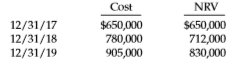 Cost NRV 12/31/17 12/31/18 12/31/19 $650,000 780,000 905,000 $650,000 712,000 830,000