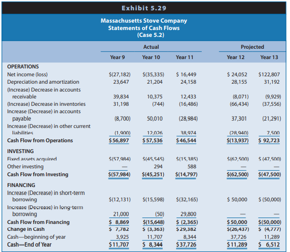 Massachusetts Stove Company manufactures wood-burning stoves for the heating of homes and businesses. The company has approached you, as chief lending officer for the Massachusetts Regional Bank, seeking to increase its loan from the current level of $93,091 as of January 15, Year 12, to $143,091. Jane OâNeil, chief executive officer and majority stockholder of the company, indicates that the company needs the loan to finance the working capital required for an expected 25% annual increase in sales during the next two years, including to pay suppliers and provide funds for expected nonrecurring legal and retooling costs.