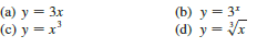 y 4 f (а) у %3D Зх (c) y = x' (b) y = 3" (а) у —