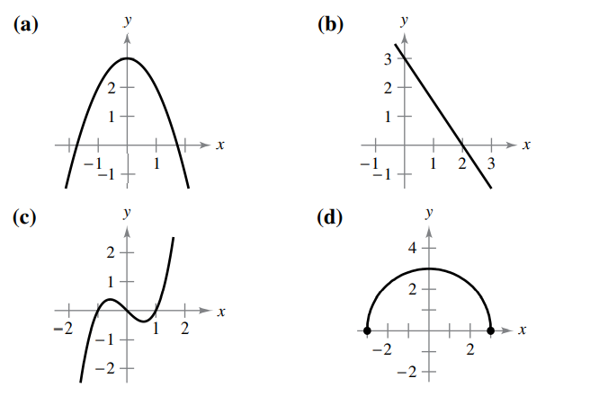 > Match the equation with its graph. [The graphs are labeled (a), (b), (c), and (d).] y = √9 – x2