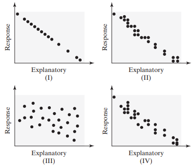 > Match the linear correlation coefficient to the scatter diagram. The scales on the x- and y-axes are the same for each diagram. (a) r = 0.787 (b) r = -0.787 (c) r = -0.053 (d) r = 0.946