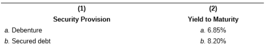 Match the yield to maturity in column 2 with the security provisions (or lack thereof) in column 1. Higher returns tend to go with greater risk.