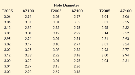 Meticulous Drill & Reamer (MD&R) specializes in drilling and boring precise holes in hard metals (e.g., steel alloys, tungsten carbide, and titanium). The company recently contracted to drill holes with 3-centimeter diameters in large carbon-steel alloy disks, and it will have to purchase a special drill to complete this job. MD&R has eliminated all but two of the drills it has been considering: Davis Drillsâ T2005 and Worth Industrial Toolsâ AZ100. These producers have each agreed to allow MD&R to use a T2005 and an AZ100 for one week to determine which drill it will purchase. During the one-week trial, MD&R uses each of these drills to drill 31 holes with a target diameter of 3 centimeters in one large carbon-steel alloy disk, then measures the diameter of each hole and records the results. MD&Râs results are provided in the table that follows and are available in the DATAfile named MeticulousDrills.