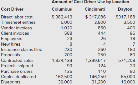Management is concerned with the recent operating results. During a review of overhead expenses, management noticed that many overhead items were clearly not correlated to the movement in direct labor dollars as previously assumed. Management decided that applying overhead based on activity-based costing and direct tracing wherever possible should provide a more accurate picture of the profitability of each branch.
