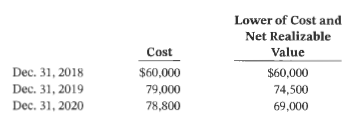 Milford Company determined its ending inventory at cost and at lower of cost and net realizable value at December 31, 2018, 2019, and 2020, as follows: