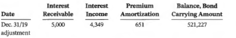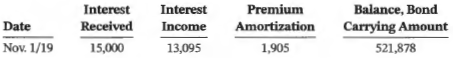 1. The bond amortization table used by Minute Corp. for this bond indicated the following for the November 1, 2019 interest received and interest income: